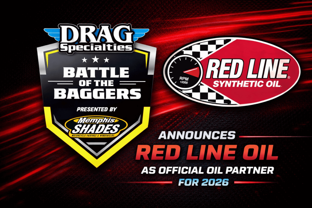 The Drag Specialties Bagger Racing League “Battle of the Baggers” presented by Memphis Shades proudly announces Red Line Oil as the Official Oil of the Bagger Racing League for the 2026 season.